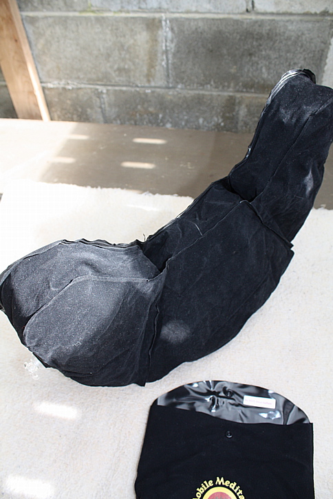 Before I leave this topic, let me also say that I cut the side chambers out (only the big middle one popped) and used one for my pillow at night and the other as knee support with the rolled-mat zafu. Both served throughout the ango with no further complications, and are still perfectly airtight. The knee support was particularly welcome, since the little cushion could be adjusted with a pinch, and sitting on that hard foam roll increased joint stress rather a lot.